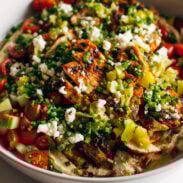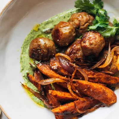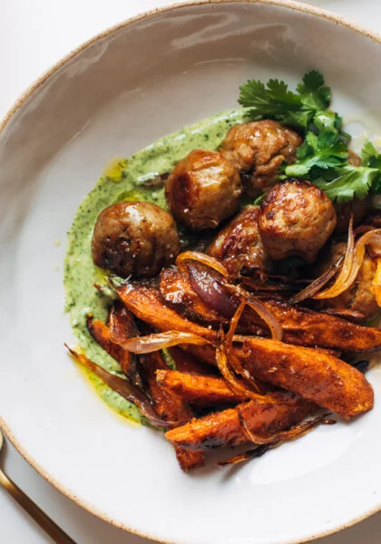 This apricot chicken, made on a sheet pan, is so easy and SO GOOD! Just a few simple ingredients, minimal cleanup, and a major flavor boost from the roasty charred scallions on top.